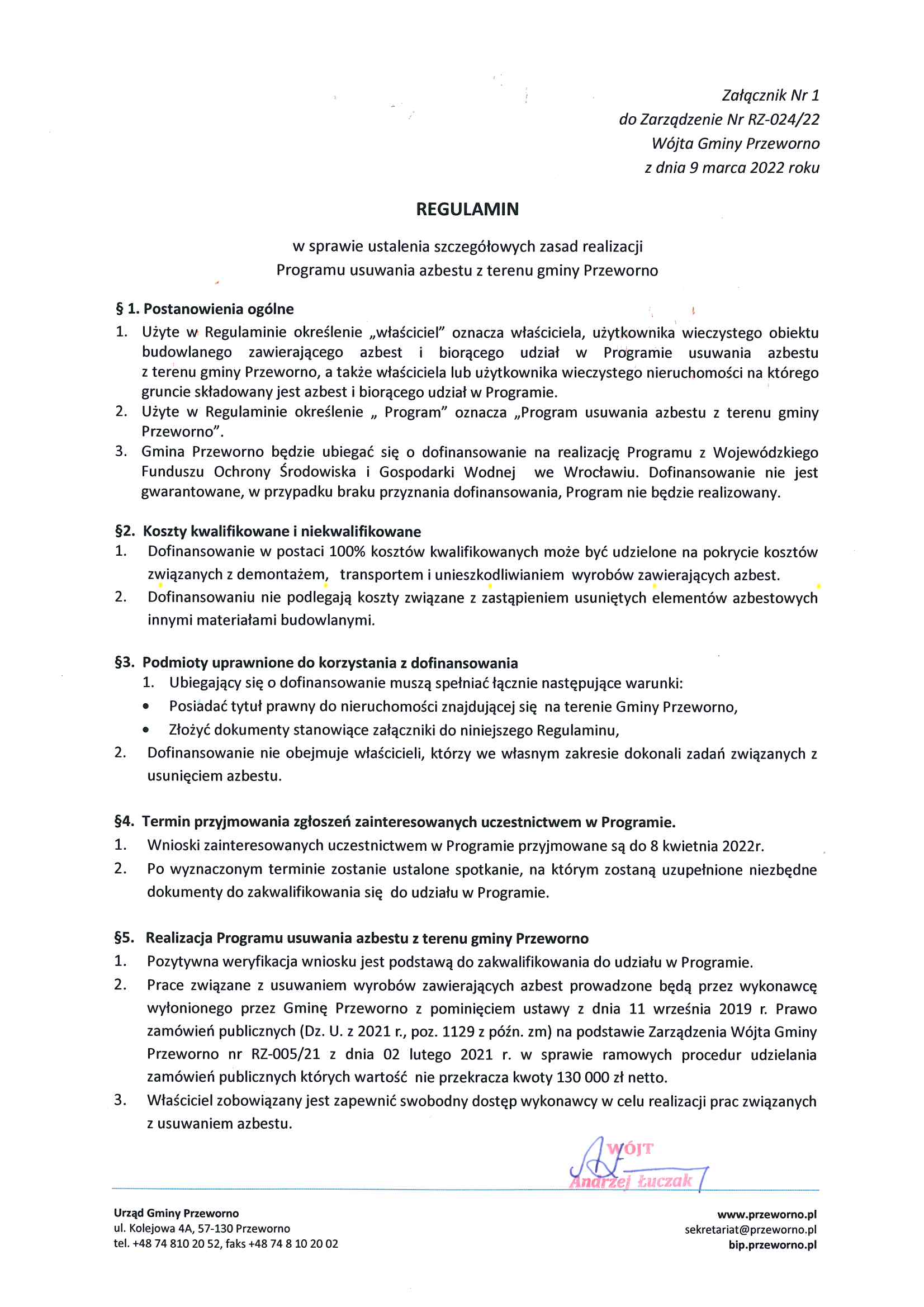 Postanowienie Wójta Gminy Przeworno